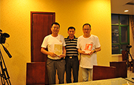 2015年8月,作家张绪军与庞贝(笔名)赠书。